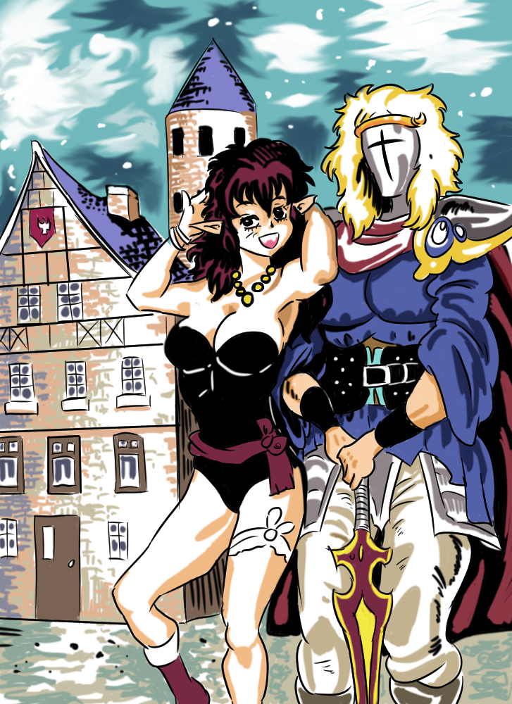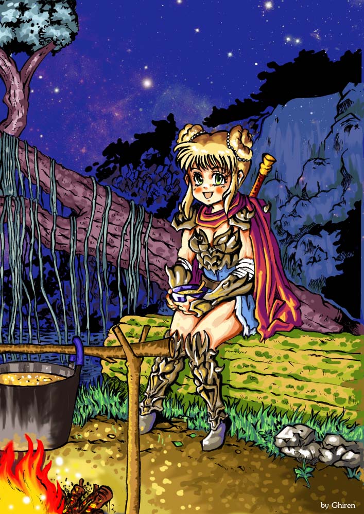 กลับมาวาดนางร้ายกับพวก reval บ้างรู้สึกว่าจะชื่อเรชิด้ากับเมอร์เดรด ประมาณนี้ละมั้ง เป็นพวกชั่วร้ายที่เติมเต็มสีสันให้กับเรื่อง แต่ความจริงก็ยังไม่มีบท ส่วนใหญ่จะมุ่งเน้นวาดฉากซะมากกว่า ก็พยายามประมาณนี้แหละ แต่ท้องฟ้าลงสีไม่เป็น แต่คงพอไหวมั้ง