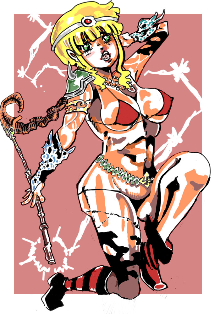 ภาพนี้ลองวาดน้องเมจสาวแสนร้อนแรงดู บิกินี่ตัวเล็กช่วยส่งเสริมความลามกเซ็กซี่ขึ้นมาอีกนิด ตัดกับสายฟ้าสีขายและ BG สีแดงนั้น ทำให้คาแร็คเตอร์เด่นชัดขึ้น สาวน้อยนางนี้ชื่อว่าเลอเทียร์ ก็เป็นอีกหนึ่งออริจินัล คาแร็คเตอร์ ที่ผมสร้างขึ้นมาเอง ความเก่งของเธอก็ระดับปานกลางนะครับ ประมาณว่ามีเวทย์หมู่และมีมีเวทย์เป้าเดียว ประมาณนั้น
